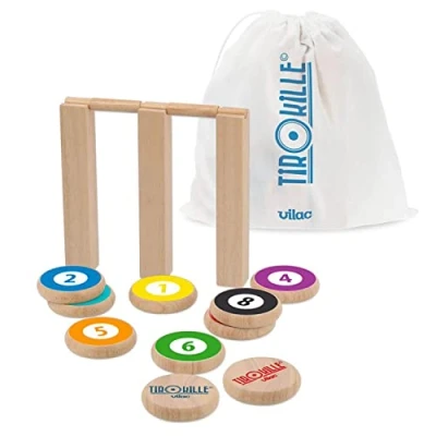 Difficile dinnover dans le domaine des quilles traditionnelles ou finlandaises et des jeux de pétanque. Vilac vous propose pourtant une création originale le TirOkille subtile mélange du jeu de pétanque du jeu de quilles et du jeu de palet. Dégommer lobstacle sen approcher sans le toucher ou passer en dessous de nombreux challenges attendent les joueurs petits et grands pour relever les défis des 4 règles du jeux différentes qui assureront lambiance en famille et entre amis !