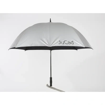 Ce grand parapluie ultra-léger vous protège à la fois de la pluie et du soleil. Grâce à un système de fixation spécialement conçu pour les chariots JuCad, le parapluie peut être accroché facilement à votre chariot JuCad. Un support pour parapluie supplémentaire n‘est pas nécessaire.Personnalisez votre parapluie avec votre propre nom ou vos initiales. L‘impression est disponible en noir, blanc ou rouge ainsi que dans trois polices de caractères différentes. L‘endroit de l‘impression varie selon le modèle de parapluie. Ajoutez le parapluie de votre choix au panier et choisissez ensuite la personnalisation souhaitée.Diamètre : 140 cm.