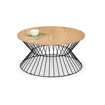 Meuble contemporain idéal dans n’importe quel salon. Plateau effet chêne avec base filaire noire. Style industriel avec élément classique. Disponible en noyer ou chêne européen. Hauteur : 40 cm. Largeur : 80 cm. Profondeur : 80 cm.