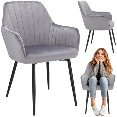 Chaise de la collection CORASD-358850 La chaise CORA est la quintessence du classicisme et de lélégance. La chaise solide en velours est équipée dune assise moelleuse et dun dossier haut avec matelassage décoratif. Lensemble paraît léger grâce aux pieds noirs élancés qui confèrent une légèreté visuelle et assurent en même temps une stabilité parfaite. La hauteur du dossier les accoudoirs et sa douceur rendent le fauteuilincroyablement confortable. Couleur : grisLoffre sapplique à une pièce. Spécifications :Siège : veloursPieds : métalCharge maximale : 120 kg Dimensions :Hauteur du meuble : 82 cmLargeur du meuble : 56 cmProfondeur du meuble : 61 cmHauteur dassise : 45 cmLargeur dassise : 41 cmProfondeur dassise : 43 cmEspacement des pieds : 47x39 cm