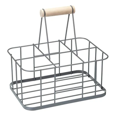 AmazonCarry and store glass bottles just like they used to back in the day with this old-fashioned bottle carrier The carrier's sturdy wire frame that securely holds and stores up to 6 bottles. It's perfect for bottles of milk, wine and cordials Finished with a warm grey powder coating, it's sure to look lovely sat on your kitchen's table or worktops Features a sturdy handle with a comfortable wooden grip. Measures 29 x 20 x 13 cm, so it's compact enough for kitchen cupboards Complement it with other wire storage solutions from Living Nostalgia. Comes with a 12 month guarantee