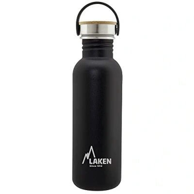Laken Bot. ac. inox Basic 750ml,tapón acero/bambú Negro