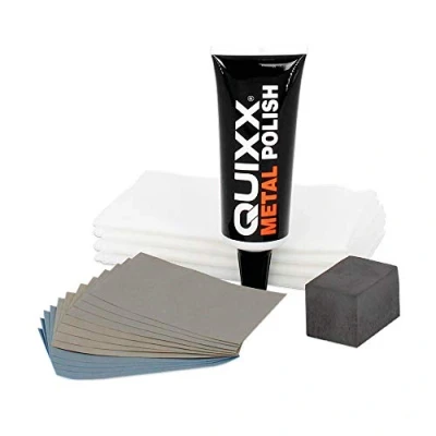 Le kit Quixx Metal Restoration est un produit de dernière génération. Il élimine la saleté et les oxydes des surfaces métalliques et redonne de l'éclat aux métaux. De plus, les petites traces d'usure telles que les rayures, l'opacité, les traces d'oxydation et de rouille disparaissent. Le produit est efficace sur toutes les surfaces métalliques polies et mates, par exemple l'or, l'argent, le platine, le chrome, l'acier inoxydable, le magnésium, le laiton, le cuivre et le nickel. Il est extrêmement puissant, nettoie et polit les surfaces tout en formant une couche protectrice. Convient aux surfaces métalliques mates, polies et brossées. Le kit comprend un papier abrasif pour restaurer l'état initial de la surface métallique brossée ou polie.
