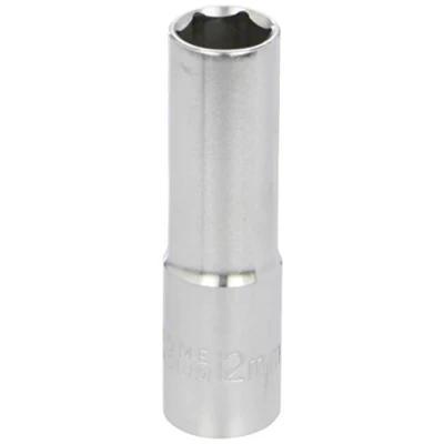 Size: 12mm single Hex x 3/8"D . Deep socket, depth: 63mm. Supplied loose. For use on Laser complete 3/8"D Socket Rack (Part No. 1161). Manufactured from chrome vanadium.