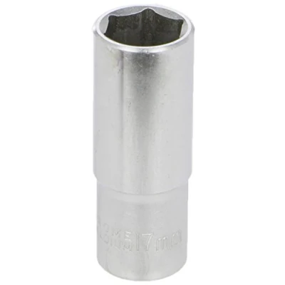 Size: 17mm single Hex x 3/8"D . Deep socket, depth: 63mm. Supplied loose. For use on Laser complete 3/8"D Socket Rack (Part No. 1161). Manufactured from chrome vanadium.