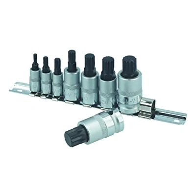 8 pièces. Livré sur un rail. Trois tailles d'entraînement 1/4 "D | 3/8" D | 1/2 "D. Fabriqué à partir de Chrome Vanadium. M4 | M5 | M6 | M8 | M10 | M12 | M14 | M16.