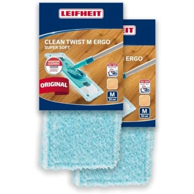 Leifheit Lot de 2 housses lave sol Clean Twist M Ergo super soft, housse rechange fibres spéciales, idéale pour sols fragiles & parquets, balai nettoyante avec absorption d’eau minimale