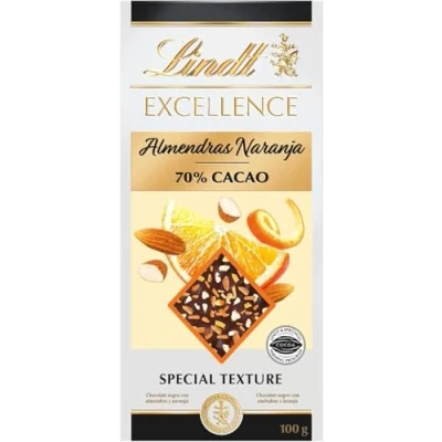 Lindt Tablette Orange Amandes 70% Cacao EXCELLENCE Chocolat Noir, 100g