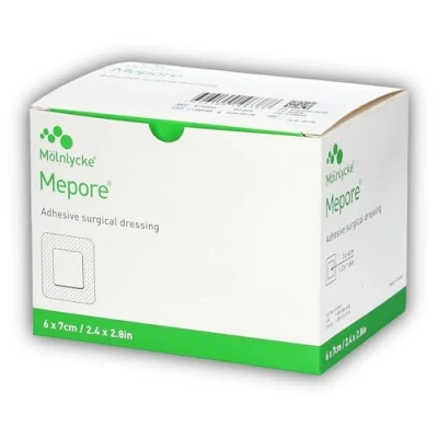Taille du pansement: 6 x 7 cmIndication:Protection des plaies faiblement à modérément exsudatives.Description du produit:Mepore® est un pansement absorbant, respirant et auto-fixant pour un large éventail de plaies associées à des niveaux d'exsudat faibles à modérés – telles que les plaies chirurgicales, les coupures et les abrasions.Le pansement se fixe solidement et en douceur à la peau à l'aide d'un adhésif à base d'eau qui n'irrite pas la peau, et est perméable à l'air pour empêcher la macération de la plaie.Conseils d'utilisation:Usage unique. Lire attentivement la notice.Conditionnementpansements x60