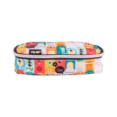 Trousse ovale avec un compartiment intérieur en maille. Série spéciale Aliens multicolore, avec un imprimé joyeux d'extraterrestres empilés, avec les mêmes personnages que le jouet éducatif en bois Aliens Tower. Doublure intérieure noire. Composition : extérieur et doublure en polyester. Composition du tissu : extérieur et doublure intérieure en polyester. Dimensions : 20,5 x 9 x 5,5 cm.