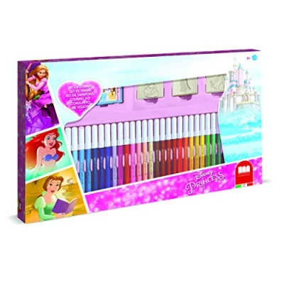 Wow, cette magnifique boîte de bricolage avec tes princesses Disney préférées est destinée aux vrais créatifs parmi nous ! Avec jusqu'à 41 pièces, vous pouvez bricoler et dessiner à votre guise. Le kit contient 36 couleurs de marqueurs, 3 timbres et 1 tampon de timbre et un livre d'activités. La boîte de bricolage mesure 43 x 28 x 3 centimètres. Convient aux enfants à partir de 3 ans. Contenu : - 3 timbres - 1 couleur et livre - 1 tampon de timbre avec encre lavable - 36 marqueurs lavables