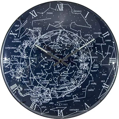 L'horloge NeXtime "Milky Way Dome" est une horloge murale en plastique et en verre dotée de la dernière technologie Glow-in-the-Dark. L'horloge doit être suspendue à la lumière du jour pour pouvoir être rechargée. Les extrémités des mains et de la galaxie s'illuminent ensuite dans l'obscurité pendant environ 4 heures. Cette horloge montre une image fascinante de notre galaxie et reste silencieuse. Elle fonctionne avec 1 pile AA (non fournie). Marque : NeXtime Groupe de produits : montres Groupe cible : unisexe Couleur du boîtier : noir Ø mm : 356 Matériau du boîtier : plastique Couleur du cadran : bleu Couleur : noir Affichage : Analogique Matériau : verre Type de produit : horloges murales Poids : 0,85 kg Forme du boîtier : ronde Une horloge en verre conçue par NeXtime et fabriquée avec la dernière technologie "glow in the dark", qui s'illumine : elle brille faiblement pour être visible dans l'obscurité et pour montrer une image fascinante et réelle de notre Voie lactée, Détails de l'articleVersionAnalogiqueAccessoires nécessaires1x pile AAPropriétéSilencieuxDomaine d'utilisationIntérieurMatériauVerre, plastiqueDiamètre35.0 cmRemarqueSilencieux, glow in the darkDimensionsØ 35,6 cmProfondeur4.5 cmCouleurBleu, blancTypeHorloge muralePiles inclusesNon Cette horloge en verre conçue par Nextime bénéficie de la dernière technologie "glow in the dark". L'horloge émet une lumière douce dès qu'il fait sombre, donnant une représentation fantastique et presque réelle de l'univers.