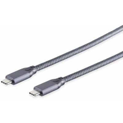 GénéralitésLongueur du câble2 mConnecteur 1USB CConnecteur 2USB CVersion USBUSB 3.2 Gen 2x2Vitesse max. Taux de transfert de données10 Gbit/sRevêtement des contacts de la ficheOrCouleur du produitGris Câble USB 3.2 USB type C mâle vers USB type C mâle, Gen 2 L'USB 3.2 Gen 2x2 double la bande passante de l'USB 3.2Gen 2 (anciennement USB 3.1 Gen 2). Les câbles USB 3.2 Gen 2x2 Type-C sont encore plus performants : outre le transfert de données bidirectionnel, ils permettent également de recharger votre ordinateur portable, votre tablette ou votre smartphone jusqu'à 100 watts, grâce à un chipset intégré. Des résolutions de 3840 × 2160 / 60Hz (4K, UHD) sont possibles.Grâce au câble USB 3.2 Gen 2x2 Type-C, vous n'avez plus besoin que d'un seul câble pour connecter votre ordinateur portable / ultrabook à votre écran et utiliser en même temps le hub USB intégré de l'écran ainsi que pour recharger votre appareil.Info : tous les appareils avec interface USB Type-C ne supportent pas la capacité de charge rapide de 100 watts (PD 3.0), le transfert de signaux vidéo (DP-Alternatemode) ou le transfert de données de 20 Gbit/s (SuperSpeed USB20 Gbps), veuillez vous renseigner auprès du fabricant de votre appareil.- Connecteurs : USB type-C mâle vers USB type-C mâle- Supporte : DP-Alternate Mode (jusqu'à 4K/60Hz), PD (jusqu'à 100W)- Bande passante jusqu'à : 20 Gbit/s- Version USB : USB 3.2 Gen 2x2 (SuperSpeed USB 20Gbps)- Compatible avec toutes les interfaces USB Type-C (entre autres) : High Speed USB,SuperSpeed USB, SuperSpeed USB 10Gbps, Thunderbolt 3- Nombre de blindages : triple- Blindage 1 : feuille ALU contrecollée PIMF (4 paires)- Blindage 2 : feuille ALU contrecollée (100% étanche)- Blindage 3 : tresse ALU (100% étanche)- Matériau des fils : cuivre étamé- Connecteur : moulé avec blindage métallique- Surface de contact : Pins dorées 15µ- Boîtier du connecteur : métal (alliage d'aluminium) intégré dans le "Moulding "les boîtiers sont reliés au connecteur et ne tombent pas- Type de câble : câble rond- Gaine du câble : PVC- Matériau de la gaine extérieure : tresse PET résistante et ne s'effiloche pas- Diamètre du câble (env.) : 5,3mm- Couleur : gris (space grau) Caractéristiques | Version USB : USB 3. S/CONN 13-47030 Longueur du câble : 2