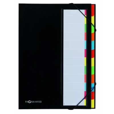 Pagna 44133 04 Classeur à soufflet 12 compartiments fermeture par élastiques (Noir)