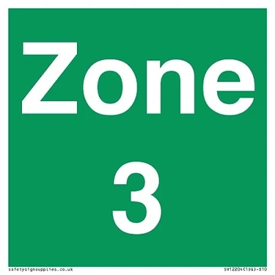 Pas de symbole Ce panneau est fabriqué à partir de plastique semi-rigide de 1 mm Plaque en plastique de 1 mm d'épaisseur, peut être vissée, collée avec de l'adhésif ou fixée avec des attaches de câble. Ne convient pas pour accrocher. S10 carré Texte du signe : Zone 3