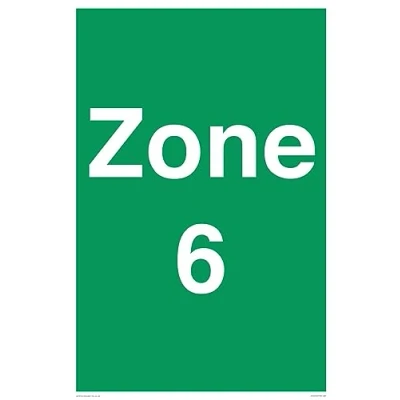 Pas de symbole Ce panneau est fabriqué en vinyle/autocollant Le vinyle Air Release permet de coller facilement sur des surfaces planes et propres sans bulles. Ne convient pas aux surfaces rugueuses, plastiques ou poussiéreuses. Portrait A2 Texte du signe : Zone 6
