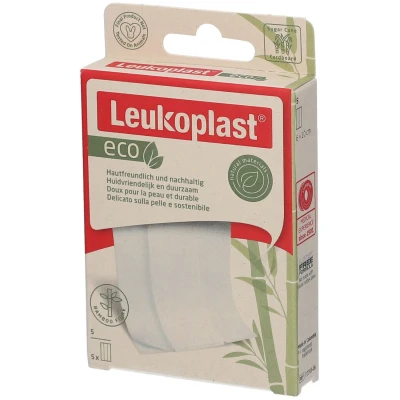 Leukoplast® eco - Pansement doux et très absorbant d'origine durable.Les pansements écologiques Leukoplast sont constitués d'un tissu de bambou blanc tissé; respectueux de la peau. Ils sont fabriqués de manière durable avec au moins 90 % de matériaux naturels et renouvelables utilisés dans le produit et l'emballage. Ces pansements souples et très absorbants adhèrent de manière fiable et sont confortables à porter.Pansement écologiqueDe sources durablesAbsorbantRespectueux de la peauContenu : 5 bandes de 6 x 10 cm