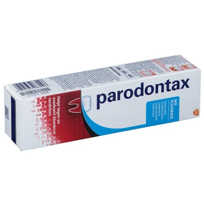 Le dentifrice Parodontax No Fluoride ne contient pas de fluor, mais il aide à éliminer la plaque dentaire, à garder des gencives saines et une haleine fraîche. Ne contient pas de fluor. Bénéfices Aide à empêcher et prévenir le saignements des gencives Parodontax est 4x plus efficace pour éliminer la plaque dentaire qu’un dentifrice ordinaire* *en cas de brossage 2x par jour, après 6 mois d'utilisation Ne contient pas de fluoride Avec un goût renouvelé Rafraîchit l'haleine Il est cliniquement prouvé que le brossage quotidien avec Parodontax aide à empêcher le saignement des gencives et à prévenir les problèmes de gencives. Conseils d'utilisation Brossez-vous les dents deux fois, pas plus de trois fois par jour. Avalez le moins possible pendant le brossage et recrachez le dentifrice après le brossage. En cas d'irritation, cesser l'utilisation. Ne convient pas aux enfants de moins de 12 ans. Tenir hors de portée des enfants. Consultez votre dentiste si vous utilisez toujours Parodontax Sans Fluor. Composition Sodium Bicarbonate, Aqua, Glycerin, Cocamidopropyl Betaine, Aroma, Xanthan Gum, Sodium Saccharin, CI 77491. Product bevat geen fluoride Conditionnement Tube de 75 ml