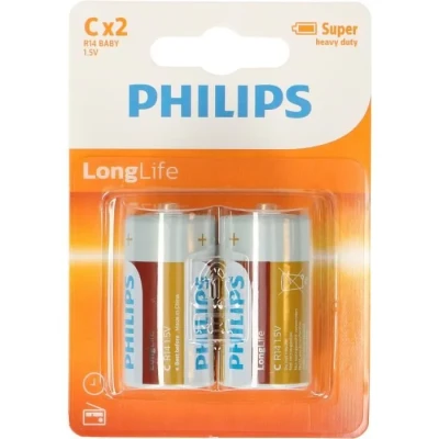 PHILIPS Piles R14 / C Longlife 1,5 V Pack de 2
