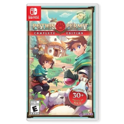 Now packed with over 30 pieces of DLC - Make your house a home with a variety of furniture and decorations ranging from cute animal plushies to chemist equipment and more! All included within Potion Permit: Complete Edition! Take care of residents. - Moonbury has around 30 unique inhabitants who will occasionally fall ill and call for your aid. Sick residents will have their schedules interrupted while they recuperate in bed. Diagnose symptoms and find a cure! - Hmm... a low heart rate and a bloated liver. Shoulder cramps, perhaps? No, these are sure signs of burning lungs. This patient has been consuming too much gelatin! Easily remedied; you'll just need to craft some Minty Goblet. Gather ingredients out in the world. - Once you've decided on a potion, ointment, or salve, gather ingredients from the surrounding environments using your upgradable tools. Explore each unique region through rain, blizzards, and the baking heat of the desert. Confront nasty monsters for their materials - Gathering materials isn’t easy, sometimes you'll need to turn your trusty tools into weapons. Engage in real-time combat and brew various concoctions to buff yourself or inflict status ailments on your adversaries and tools.