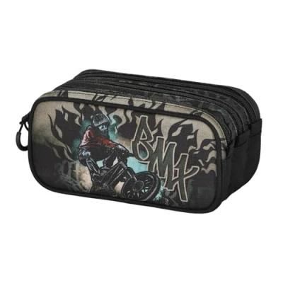 Trousse scolaire avec 3 compartiments zippés Fabriquée dans un matériau très résistant (Ripstop) Doublure intérieure Sangle arrière pour le transport sur chariot Dimensions: 10 x 23 x 11 cm