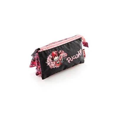 Trousse avec trois compartiments différenciés Dispose d'une double fermeture éclair Poignée métallique avec pièce en PVC Capacité : environ 70 pièces Design Pucca