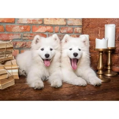 Puzzle 1000 pièces : Chiots samoyèdes Disent Bonjour