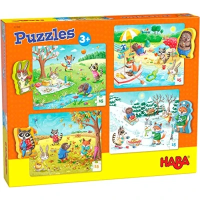 Amazon4 adorables motifs, chacun avec 15 pièces 4 figurines en bois tendrement illustrées Puzzles 20 x 25 cm Motif: saisons, Éditeur: Haba