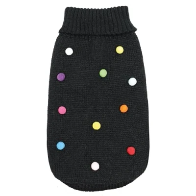 Record Pull pour Chien Candy Shop, Longueur Dos 50 cm, à col Haut de Couleur Unie et Pompon velouté. Trou Laisse Lavable en Machine Noir, XL
