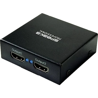 Splitter HDMIAdaptateur secteurManuel d'utilisationModèleBoîtier métalliqueLarge gamme de fréquences : 25 MHz - 600 MHzCaractéristiques techniques :Bande passante vidéo : 600 MHz / 6 Gbps par canal, 18 Gbps pour tous les canauxPort d'entrée : 1 × HDMI (connecteur femelle)Ports de sortie : 2 × HDMI (connecteur femelle)Résolution de sortie :480i~1080p@50/60,1080p@24/50/60,VGA ~ UXGA, 4K 2K à 60 HzDonnées standard :Dimensions : 65 x 62 x 21 mm (L x l x H)Poids : 105 gTempérature de travail & humidité : 0°C à 40°C / 20% à 90% RH (sans condensation) SpeaKa Professional SP-HDS-220 1+2 Port HDMI Splitter Ultra HD 3840 x 2160 Pixel Black (SP-9006064)