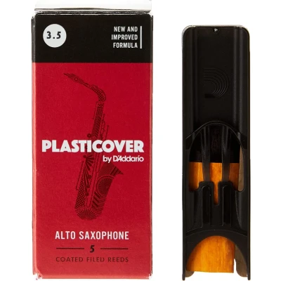 plátek pro alt saxofon, Plasticover, cena za 1 ks Les anches Plasticover pour saxophone alto de force 3.5 sont idéales pour les musiciens qui doivent changer rapidement d'instrument, car elles sont protégées de l'humidité et des changements climatiques. De plus, la coupe "filed" favorise la facilité d'attaque et le double revêtement assure un son clair et exceptionnel.