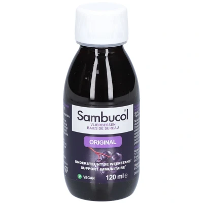 Complément alimentaire à utiliser dans le cadre d'une alimentation variée, équilibrée et d'un mode de vie sain.Sambucol est un extrait de baies de sureau noir extrêmement riches en flavonoïdes qui renforcent le système immunitaire. Les flavonoïdes sont des anti-oxydants naturels très puissants qui protègent les cellules des dommages possibles provoqués par les radicaux libres.Certains flavonoïdes, les anthocyanines se trouvent principalement dans les pigments des fruits de couleur bleu ou violet foncé comme les baies de sureau noir. Ce sont eux qui possèdent des propriétés étonnantes pour renforcer le système immunitaire. Le mode de fabrication original de Sambucol renforce le pouvoir naturel de ces anthocyanines, permettant d’obtenir un complément alimentaire bénéfique pour toute la famille.Extrait de la nature, développé par des scientifiques et testé en laboratoire, Sambucol est utilisé par des millions de personnes dans le monde.Composition :Sirop de glucose, extrait de jus de sureau 1 :1, acide citrique, conservateur (sorbate de potassium)Valeur nutritionnelle : Pour 40 ml (dose max. quotidienne)Extrait de baies de sureau (Sambucus nigra)15 gConseils d'utilisation :Adultes et enfants à partir de 12 ans : 10 ml une fois par jour ou maximum 10 ml quatre fois par jourEnfants : 5 ml une fois par jour ou maximum trois fois par jour.Précautions d'emploi :Ne pas dépasser la dose journalière recommandée. Tenir hors de portée des enfants.Poids net :120 mlFabricant :Ts Health Benelux ProductsGelreweg 93843 AN HarderwijkPays-Bas