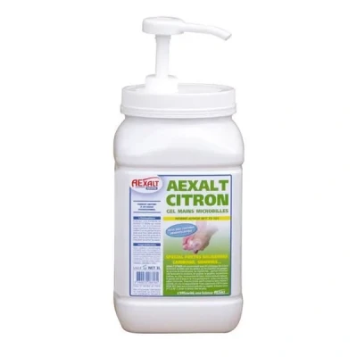 Savon gel citron 3L + pompe Aexalt Aexalt citron est recommandé pour le nettoyage des mains fortements souillées dans les ateliers sur les chantiers les garages les services de maintenance les imprimeries...Nagresse pas la peau et se rince parfaitement. Laisse une discrète odeur citronée.