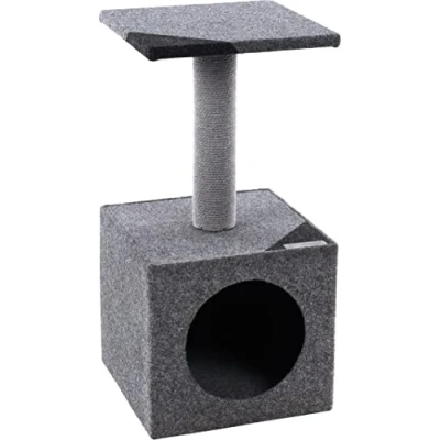 Matériau : feutre (280 g/m²) Grattoir avec corde à gratter en coton (5 mm) Diamètre grattoir : 7 cm Plateforme et cachette rembourrée Cachette et plateforme sont recouvertes à l'intérieur et sur le fond
