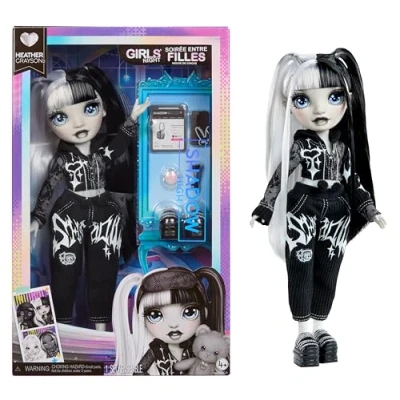 POUPÉE HEATHER GRAYSON : Shadow High revient pour une soirée entre filles ; Heather montre son style audacieux en camaïeu de gris et sa personnalité confiante DES DÉTAILS SUBLIMES : Heather affiche des tons noirs, blancs et gris de la tête aux pieds ; des queues de cheval droites et monochromes, de vrais cils, des yeux en verre et des accents de mode détaillés ARTICULÉE POUR RACONTER DES HISTOIRES : Entièrement articulée pour raconter des histoires amusantes ; bougez sa tête, ses bras et ses jambes pour la faire tenir la pose assise ou debout ACCESSOIRES POUR UNE SOIRÉE DES FILLES : fard à joues et pinceau pour se maquiller pour jouer à se relooker, plus une tablette et un téléphone pour que les filles puissent regarder des émissions, des tutoriels de maquillage ou passer des appels amusants LONGS CHEVEUX FACILES À BROSSER : Heather possède un peigne pour vous permettre de brosser et coiffer ses longs cheveux noirs et blancs ; créez vos propres looks pour la meilleure soirée entre filles CE QUI EST INCLUS : Une poupée mannequin de 28 cm, une tenue tendance en camaïeu gris, des mules douillettes, un peigne, une tablette, un téléphone, un pinceau de maquillage, un fard à joues et des accessoires MÉLANGEZ ET ASSORTISSEZ-LES : Collectionnez Natasha, Heather, Luna et Shanelle pour mélanger et assortir les tenues et créer votre propre ligne de mode monochrome Shadow High REGARDEZ LA SÉRIE : Plongez dans l'univers de Shadow High et Rainbow High en ligne. Recherchez « Rainbow High » et amusez-vous !, Éditeur: MGA Entertainment