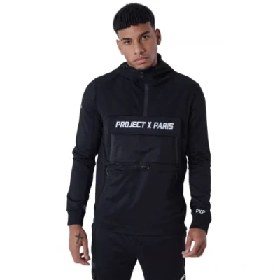 Sweat homme Project X Paris noir à capuche Col montant zippé Broderie contrastée 4 poches zippées