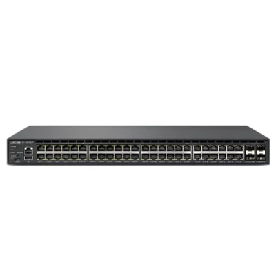 GénéralitésType de périphériqueCommutateur - 48 ports - L3 - géré - empilableType de boîtierBureau, montable en rack 1USous-type2.5 Gigabit EthernetPorts24 x 100/1000/2.5G (PoE++) + 24 x 10/100/1000 (PoE+) + 4 x SFP+ + 2 x QSFP+Alimentation par Ethernet (PoE)PoE++Budget PoE1440 WPuissanceDébit : 480 Gbit/s Débit de paquets maximal : 357 MppsCapacitéInterfaces virtuelles (VLAN) : 4093 Taille de la mémoire tampon empaquetée : 4 Mo Pool DHCP : 16Taille de la table d'adresses MAC32.000 entréesPrise en charge des trames Jumbo12.288 octetsProtocole de routageIGMPv2, IGMP, MLDv2, MLD, MSTP, RSTPProtocole de gestion à distanceSNMP 1, SNMP 3, SNMP 2c, SSH, ICMP, IPv4, IPv6, TACACS+, RADIUSAlgorithme de cryptageSSLCaractéristiques de performancePrise en charge du réseau local (LAN) virtuel, mise en miroir des ports, prise en charge DiffServ, filtrage par adresse MAC, filtrage par adresse IP, possibilité d'évolution vers de nouveaux micrologiciels, Quality of Service (QoS), serveur DHCP, relais DHCP, Port Security, géré par le cloud, boîtier métallique, Type of Service (ToS), 3 ventilateurs, Storm Control, contrôleur de source IP, VLAN vocal, Private VLAN Edge (PVE), LANCOM Management Clouds produitsIEEE 802.3, IEEE 802.3u, IEEE 802.3z, IEEE 802.1D, IEEE 802.1Q, IEEE 802.3ab, IEEE 802.1p, IEEE 802.3af, IEEE 802.3x, IEEE 802.3ad (LACP), IEEE 802.1w, IEEE 802.1x, IEEE 802.3ae, IEEE 802.3ac, IEEE 802.1s, IEEE 802.1ad, IEEE 802.1v, IEEE 802.1ab (LLDP), IEEE 802.1ak, IEEE 802.3at, IEEE 802.3az, IEEE 802.1AX, IEEE 802.1Qbb, IEEE 802.1Qat, IEEE 802.3bj, IEEE 802.1Qav, IEEE 802.3ax, IEEE 802.3btIndicateurs d'étatAlimentation, lien/activitéExtension/connectivitéInterfaces24 x 1000Base-T RJ-45 PoE+ 24 x 100/1000/2.5G RJ-45 PoE++ 4 x 1/10Gbit LAN SFP+ 2 x 1/10Gbit LAN QSFPAlimentation électriqueAlimentation électriqueBloc d'alimentation interne - branchement à chaudTension d'alimentation requiseCourant alternatif 100-240 V (50 - 60 Hz)Consommation électrique en fonctionnement920 wattsDiversAccessoires fournis2 x supports de fixation 19Câbles inclusCâble micro-USB - 1 m Câble série - 1.5 mKit de montage en rackFournis du produitIC, FCC, ACMA, RFC1213, RFC1493, RFC2674, RFC2460, RFC2863, RFC854, RFC1215, RFC2233, RFC2665, RFC2618, RFC4443, RFC4291, RFC2737, RFC2819, RFC3414, RFC3415, RFC3636, RFC1534, RFC2021, RFC1769, RFC2613, RFC2617, RFC2818, RFC2933, RFC3019, RFC3587, RFC3621, RFC3635, RFC4133, RFC4188, RFC4251, RFC4668, RFC4670, RFC5519, RFC7513, RFC3276Logiciel / Configuration requiseSystème d'exploitation requisLCOS SX 5.20Dimensions et poidsLargeur44.2 cmProfondeur44 cmHauteur4.4 cmPoids6.3 kgService et assistanceConditions environnementalesTempérature de fonctionnement min0 °CTempérature de fonctionnement max. Température de fonctionnement maximale40 °CHumidité de fonctionnement autorisée10 - 90 % (sans condensation)0 °C50 °C > Highlights - Switch d'accès multi-gigabit - 48x 2,5 ports multi-gigabit Ethernet avec support PoE (24x PoE+, 24x PoE++) - 4x ports SFP+ - 2x ports QSFP+ - Capacité du switch : 480 Gbit/s - Budget PoE : 720 watts (avec deuxième PSU en option 1440 watts) - 1x PSU hot-swappable intégré, deuxième PSU en option - 2x PSU fixes, ventilateurs redondants (N+1) - Design de ventilation front-to-back pour un refroidissement optimal dans les racks 19- - Cloud-managed LAN et empilage de commutateurs pour une gestion confortable via LMC - Support IPv6 et IPv4 pour les réseaux d'entreprise modernes > Type de produit - Switch - catégorie ear (ElektroG) : pertinent, Catégorie 6 : Petits équipements informatiques et télécoms, Petits équipements informatiques et télécoms B2C > Spécifications - Ventilateur intégré - Type de switch : Access - Capacité de switch : 480 Gbit/s (Gbps) - WEEE : 45401549 > Ports - Total des ports cuivre (RJ45) : 48 - Total des ports fibre optique (fixes ou SFP) : 6 - Dont ports compatibles PoE : 48 - Bande passante : 2,5G-Base-T - Norme PoE : PoE - 802.3af, PoE+ - 802.3at - Budget PoE : 720 W - Port console - Type de port principal : cuivre - Nombre de ports PoE+ (af/at) : 24 - Nombre de ports PoE++ (bt type 3) : 24 - Nombre de ports RJ45 (1G) : 24 - Nombre de ports RJ45 Multi Gig (2,5G) : 24 - Nombre de ports QSFP+ (40G) : 2 - Nombre de ports SFP+ (10G) : 4 > Fonctions - Switch administrable : oui - Type de montage : montage en rack 19 - Empilage - IGMP > Alimentation - Bloc d'alimentation : intégré > Caractéristiques de base - Couleur : noir - Poids : 6.3 kg - LANCOM GS-4554XUP - Aperçu rapide du matériel (DE/EN), Guide d'installation (DE/EN) - Câble de configuration série, 1,5 m - Câble de configuration micro-USB, 1,0 m - Câble d'alimentation secteur froid - Bloc d'alimentation SPSU-920 - 2x équerres de montage 19 pouces LANCOM GS-4554XUP : Un switch Gigabit performant avec 48 ports et des ports 10G en liaison montante pour une utilisation professionnelle. Lancom GS-4554XUP - Commutateur - Power over Ethernet LANCOM GS-4554XUP Commutateur d'accès PoE++ 24x 2.5G PoE+ 802.3at 24x 2.5 GE PoE++ 802.3bt (61884) LANCOM GS-4554XUP - Commutateur - L3 - géré - 24 x 100/1000/2.5G (PoE++) + 24 x 10/100/1000 (PoE+) + 4 x SFP+ + 2 x QSFP+ - Bureau, rackable - PoE++ (1440 W)