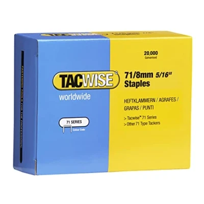 Agrafes en fil métallique fin de première qualité pour les projets de tapisserie d'ameublement à grande échelle, appréciées pour leur apparence discrète et les dommages minimes qu'elles causent à la surface Lot de 20.000 agrafes galvanisées de type 71/8mm, équivalentes aux agrafes Meite 71, BeA 71, Bostitch 72 et Senco C Populaire pour les applications de tapisserie d'intérieur grâce à son revêtement galvanisé résistant à la rouille et à sa forte capacité de maintien Convient pour la fixation de plusieurs types de matériaux, comme les tissus, les panneaux de lambris, l'isolation et les doublures, idéal pour les travaux de re-tapisserie Compatible avec les agrafeuses Z3-53, A7116V, A7116LN and A7116P, ainsi que toutes les autres agrafeuses acceptant des agrafes de 71/8mm (veuillez toujours vérifier la compatibilité avec votre outil avant l'achat)