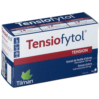 Complément alimentaire à utiliser dans le cadre d’une alimentation variée, équilibrée et d’un mode de vie sain.Tensiofytol® TENSION®L'extrait sec d'olives ( Olea europaea ) contient des polyphénols, dont l'hydroxytyrosol; le plus puissant antioxydant et radical libre de la nature.Grâce à ses propriétés antioxydantes, l'hydroxytyrosol contribue à réduire l'oxydation du cholestérol LDL et la formation de plaques d'athérome.Composition:Extrait sec de feuilles d'olivier; gélatine, extrait sec d'olive; charge : cellulose microcristalline. Phosphate tricalcique, anti-agglomérant : dioxyde de silicium, talc, sels de magnésium d'acides grasValeur nutritionnelle: Pour 1 capsuleExtrait sec de feuilles d'olivier167 mgExtrait sec d'olive53 mgConseil d'utilisationPrendre 1x par jour 2 capsules avec suffisamment de liquide.Précautions d'emploi:La quantité journalière recommandée indiquée ne doit pas être dépassée.Conserver dans un endroit frais (6-25 °C) et à l'abri de la lumière. Tenir hors de portée des enfants.Poids net:56 capsulesFabricant:Tilman NVZi Sud 155377 Belgien