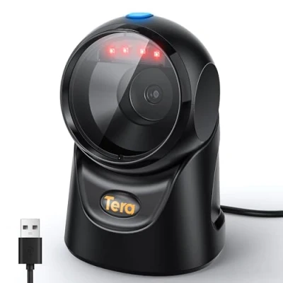 Hands-Free 2D Barcode Scanner - Simply place the scanner on your desk for effortless scanning—no need to hold it. Free up both hands to handle bulky items with ease, boosting checkout efficiency for cashiers. Plug and Play, No Software Needed - Tera 9700 desktop barcode scanner works instantly—just connect via USB to your PC, laptop, or POS system. Fully compatible with Windows XP/7/8/10, Mac OS, and Linux for seamless setup. Omnidirectional 360° Scanning - This barcode scanner boasts 360° omnidirectional scanner capability, ensuring reliable barcode capture from virtually any angle. With its meticulously designed array of omnidirectional camera lenses, you can say goodbye to constant adjustments of angles and distances, making successful scans effortless. Versatile Desktop Barcode Scanner - Perfect for supermarkets, retail stores, libraries, logistics, healthcare, banking, and any industry requiring fast, hands-free scanning at checkout or inventory management. Support Digital Printed 1D 2D QR Barcodes - This desktop omnidirectional barcode scanner can easily capture 1D 2D QR Code on labels, paper, plastic card, and mobile phone or computer displays, sensitive and accurately. 1D Barcode Capability: Codabar, Code 11, Code 93, MSI, Code 128, UCC/EAN-128, Code 39, EAN-8, EAN-13, UPC-A, ISBN, Industrial 2 of 5, Interleaved 2 of 5, Standard 2 of 5, Matrix 2 of 5; 2D Barcode Capability: QR, PDF417, Data Matrix, Aztec, MaxiCode.