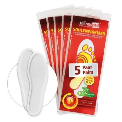 CdiscountDécouvrez les semelles chauffantes THERMOPAD taille L (40-42) offrant jusquà 8 heures de chaleur naturelle. Activées par lair elles sont idéales pour un confort optimal dans vos chaussures. Parfaites pour les adultes ces semelles sont disponibles en pack de 5.