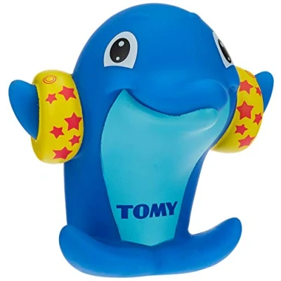 Un petit dauphin très amusant qui deviendra vite le premier copain de bébé à l’heure du bain. L’heure du bain reste un moment inoubliable ! Ce dauphin va devenir le compagnon favori des jeux aquatiques des enfants. Il flotte et lorsque bébé appuie sur sa tête et le fait aller sous l’eau, il émet un sifflement joyeux ! Quand on appuie sur son corps, il devient gicleur et envoie des jets d’eau !, Éditeur: TOMY