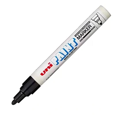 Le marqueur permanent PAINT PX-20 de UNIBALL couleur noire offre une pointe de 22 à 28 mm. Il est indélébile et opaque idéal pour une utilisation sur toutes surfaces telles que le verre le bois le métal le plastique et le cuir. Sans chlore soufre halogène ni silicone il garantit une excellente couvrance.