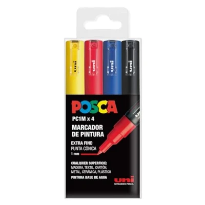 UNI Posca Lot de 4 marqueurs PC1M à pointe conique extra fine couleurs base