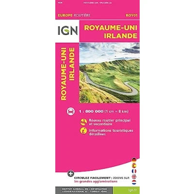 Ces cartes vous permettront d’avoir accès : au réseau routier principal et secondaire, à des zooms sur les villes principales, à un index des localités, à des informations touristiques détaillées claires et faciles à lire. Vous pourrez ainsi préparer précisément vos itinéraires et vous repérer rapidement pendant vos trajets.L'Angleterre, berceau de Shakespeare et des Beatles, est un pays des îles britanniques, à la frontière avec l'Écosse et le Pays de Galles. Londres, sa capitale située sur la Tamise, abrite le Parlement, Big Ben et la tour de Londres, qui date du XIe siècle. Il s'agit également d'un pôle multiculturel moderne pour les arts et le commerce. Les autres grandes villes du pays sont Manchester, Birmingham, Liverpool, Bristol, et les centres universitaires d'Oxford et de Cambridge. Population : 56 000 000 Langue : anglais L'Irlande est une république parlementaire dont les deux langues officielles sont l'irlandais et l'anglais. Le pays a pour capitale Dublin et a pour monnaie l'euro. L'Irlande est membre de l'Union européenne depuis 1973. La plus grande ville est la capitale Dublin, les autres principales villes étant Cork, Limerick et Galway. L'Irlande revendique son identité celtique, considérée comme l'une des six « nations celtiques ». Le symbole officiel du pays est la harpe celtique (qui figure sur les pièces d'euro), mais le trèfle irlandais est souvent utilisé comme autre symbole, notamment par l'équipe irlandaise de rugby. Population : 5 176 569 Langues : irlandais, gaélique, anglais