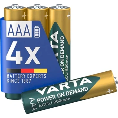 VARTA Piles rechargeables AAA, lot de 4, Recharge Accu Power, 800 mAh Ni MH, sans effet mémoire, préchargées, prêtes à l'emploi