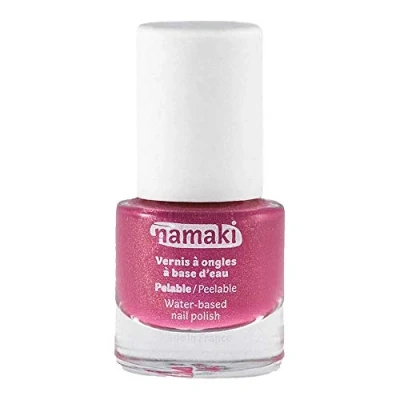 Vernis à ongles à base d\'eau spécialement conçu pour les enfants. Facile à utiliser, sèche rapidement et peut être retiré sans solvant comme un autocollantMode d\'emploi : Agitez le flacon avant de l\'ouvrir. Appliquez le vernis et laissez-le sécher pendant une minute ou deux.Namaki est une marque née avec l\'idée de créer un maquillage respectueux de la peau des enfants et de l\'environnement, testé dermatologiquement et non testé sur les animaux.FonctionnalitésComposition : eau, copolymère d\'acrylate, éther méthylique PPG-2, cocoate de glycéryle PEG-7, glutarate de siisobutyle, fluorphlogopite, synthétique, disiloxane, copolymère PEG-150, oxyde d\'étain, hectorite, adipate de diisobutyle, benotinite, diméthicone PEG-12, phénoxyéthanol, propylène glycol, mica, copolymère de styrène, tocophérol, CI 77492, CI 77499, CI 77891Capacité : 7,5 mlLe vernis peut être conservé pendant 12 mois après ouvertureÀ utiliser par un adulteSans parabens, sans formaldéhyde, sans phtalates, sans toluène, sans camphre et sans nanoparticulesFabriqué en FranceUtilisation recommandée sous la surveillance d\'un adulte