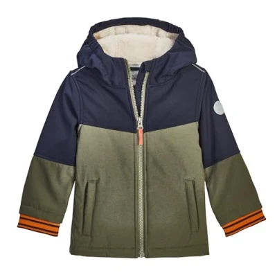 AmazonVeste softshell pour petits enfants avec capuche 10.000 mm de colonne d'eau, déperlant, coupe-vent polaire douillette à l'intérieur, étiquette avec le nom de l fermeture éclair avec protection du menton, poignets en tric Imprégnation sans PFAS Design colourblock, éléments réfléchissants