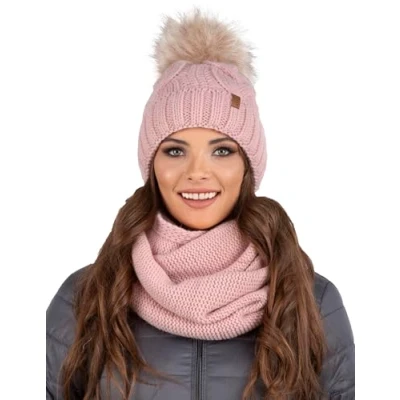Vivisence 7014 Beanie AND LOOP Scarf SET Écharpe tube, Femme, Taille: One Size, Light pink