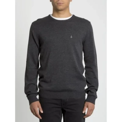 Pull ras du cou à coupe ajustée. Broderie en pierre Volcom sur la poitrine. Surjet surpiqué sur la couture latérale.